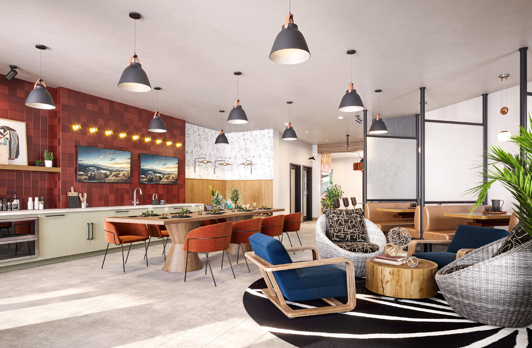 • Clubhouse with a well-appointed chef’s kitchen, living room, and televisions