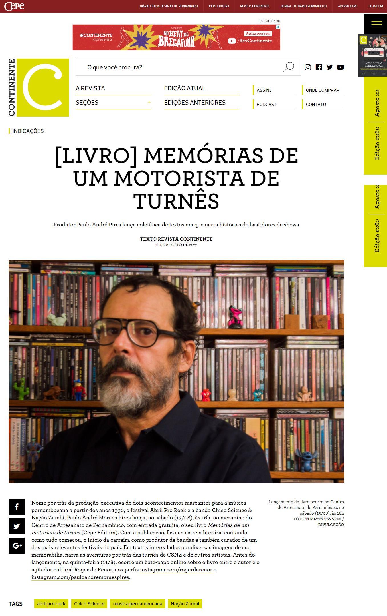 https://revistacontinente.com.br/secoes/indicacoes/ livro memorias de um motorista de turnes