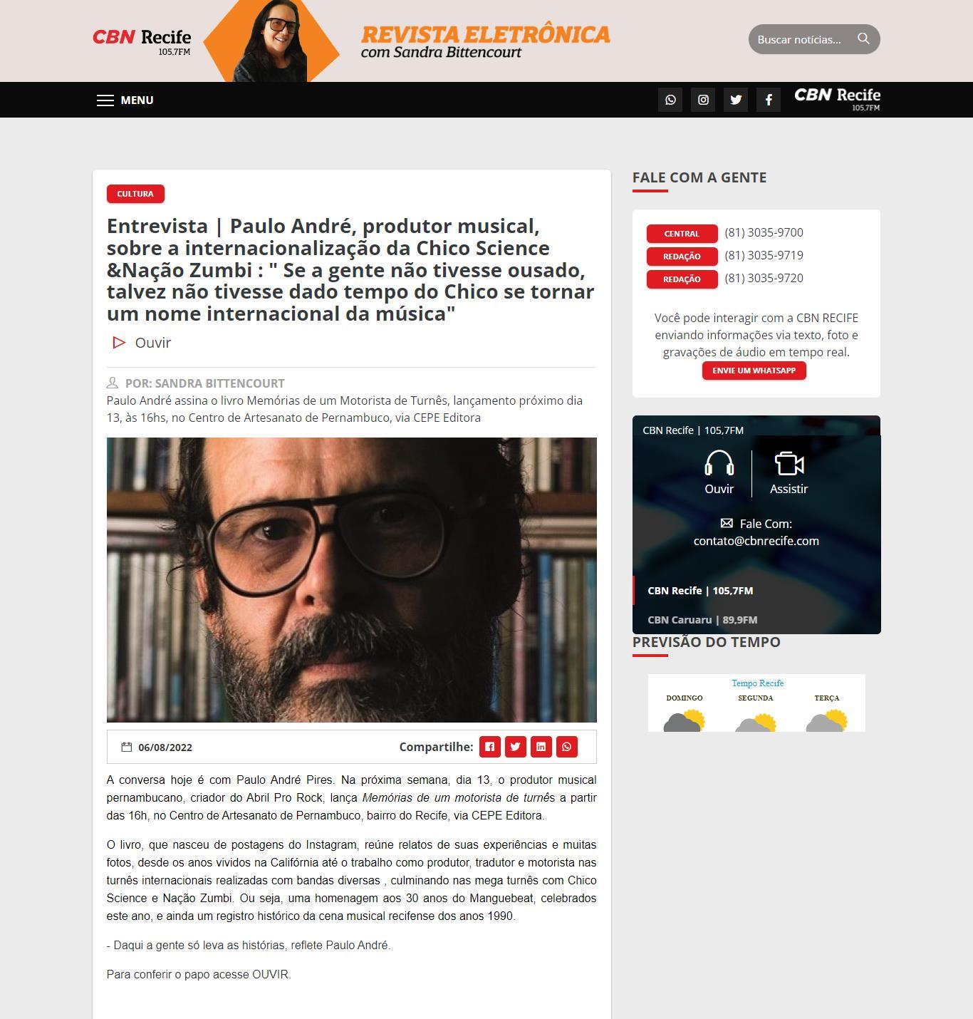 https://www.cbnrecife.com/revistaeletronica/artigo/entrevista paulo andre produtor musical sobre a internacionalizacao da chico science nacao zumbi se a gente nao tivesse ousado talvez nao tivesse dado tempo do chico se tornar um nome internacional da musica
