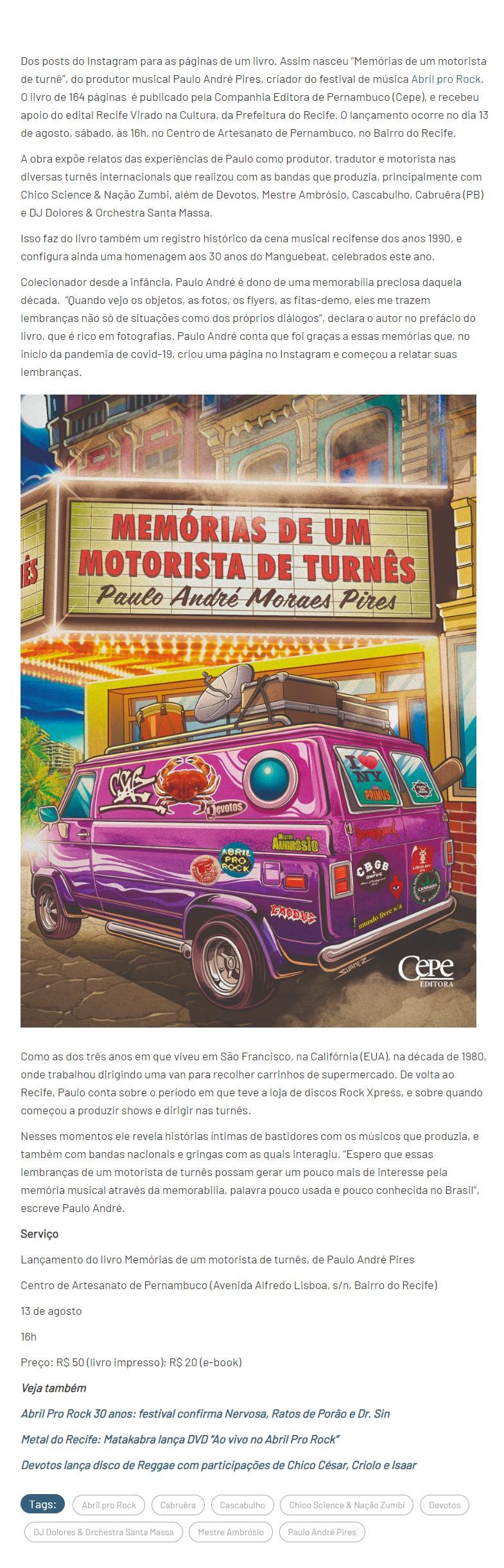 https://www.diariodepernambuco.com.br/noticia/viver/2022/08/paulo andre pires lanca livro memorias de um motorista de turnes no ce.html