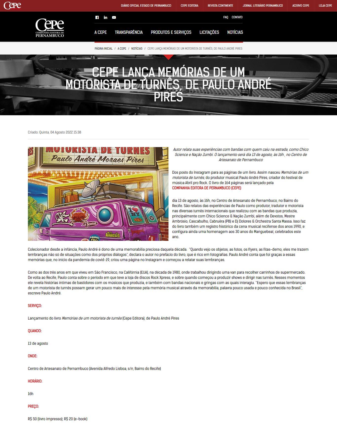 https://www.cepe.com.br/noticias/cepe lanca memorias de um motorista de turnes de paulo andre pires