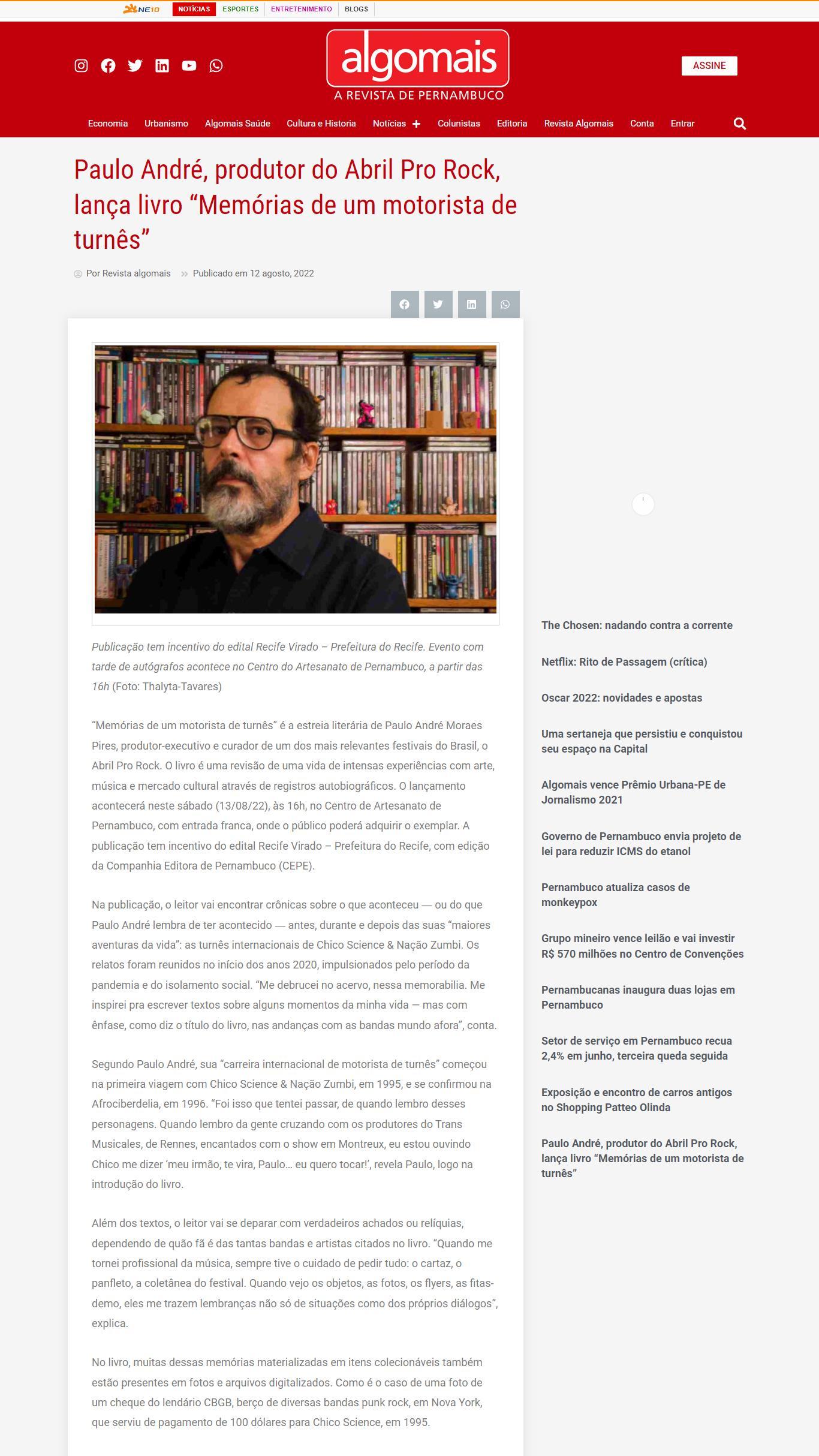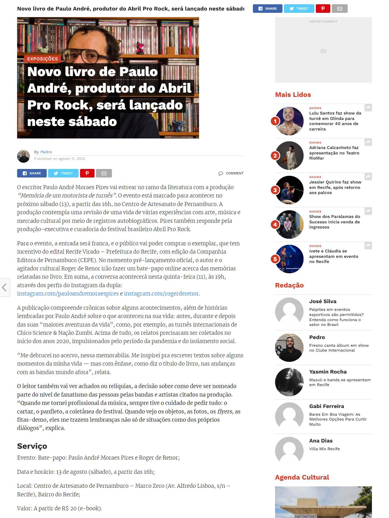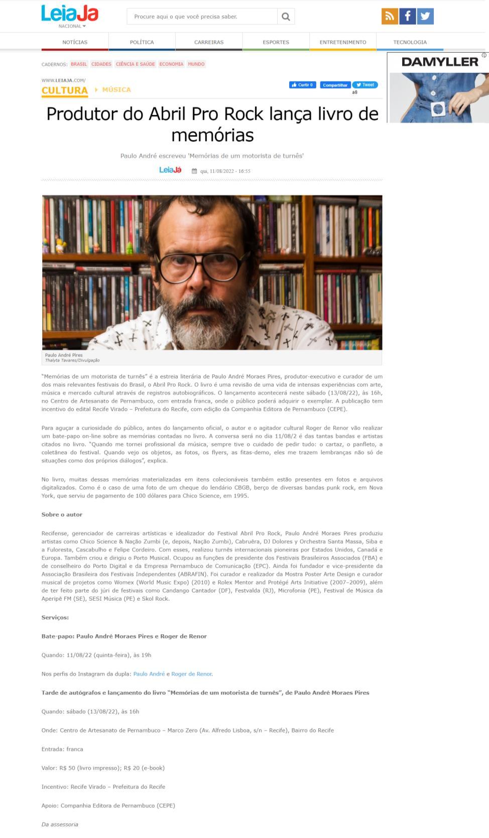 https://www.leiaja.com/cultura/2022/08/11/produtor do abril pro rock lanca livro de memorias/