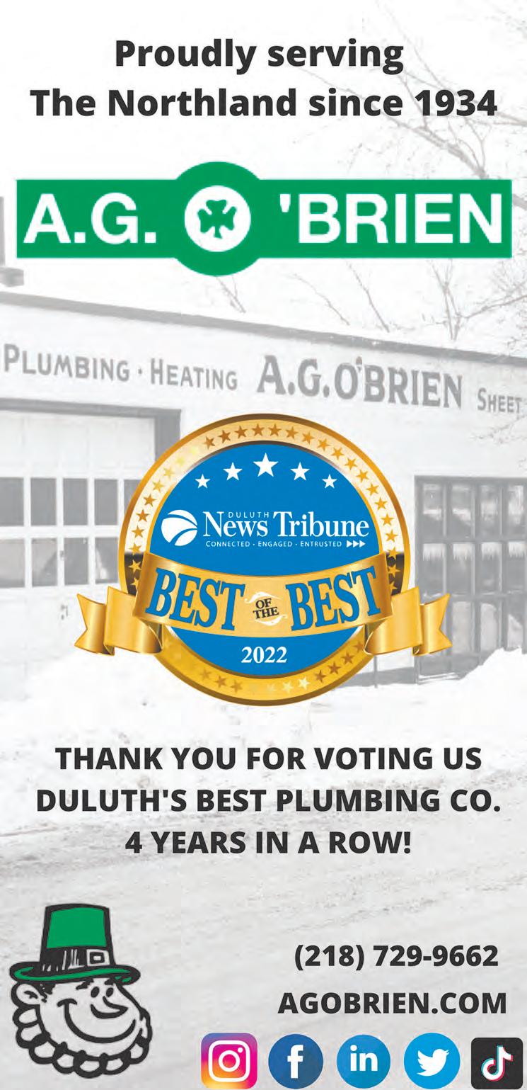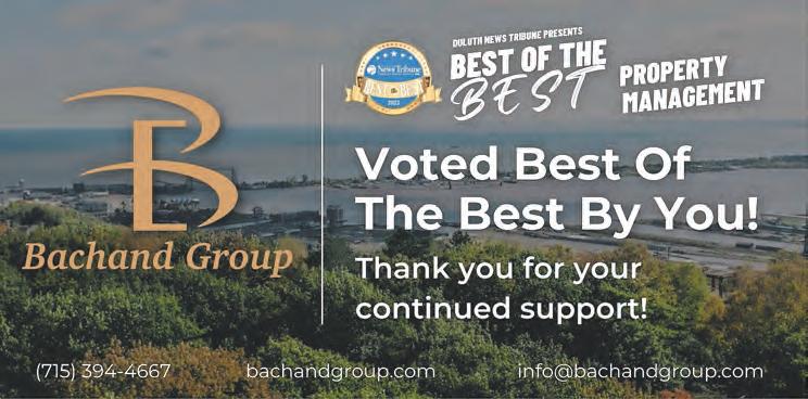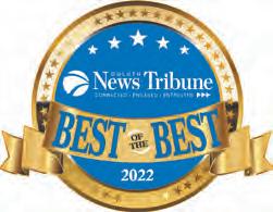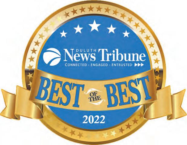 30 | WEDNESDAY, SEPTEMBER 21, 2022 BEST OF THE BEST Thank youforsupportingourlocallyownedbusiness! 5102 SCantRd,Duluth,MN55804www.superiorfuelcompany.com(218)722-2050info@superiorfuelcompany.com Giveusa cal l&seewhySuperiorFuelCompanywas voted#1FuelOilandPropaneCompanyforthepast 4years. 3 YearPriceProtection MonitoredDelivery Industr yLeadingCustomerService SERVICES GROUP Best Tattoo Studio WINNER GITCHEE GUMEE TATTOO 2ND PLACE ANCHORS END TATTOO Best Taxi WINNER SK TAXI USA 2ND PLACE LYFT Best Trucking Company WINNER UPPER LAKES FOODS 2ND PLACE JEFF FOSTER TRUCKING Best Veterinary Office WINNER SUPERIOR ANIMAL HOSPITAL 2ND PLACE HAPPY TAILS ANIMAL HOSPITAL Best Travel Agency WINNER DIVINE DESTINATIONS 2ND PLACE TRAVEL BY HORIZONS