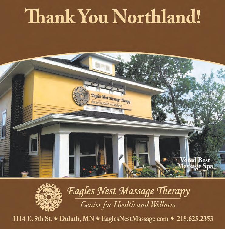 24 | WEDNESDAY, SEPTEMBER 21, 2022 BEST OF THE BEST 218-728-1453 Located in Kenwood Shopping Center | No Appointment Needed Thank you to our great customers for voting us Best Oil Change! Thank you for your support and for trusting us www.outofthecloudsduluth.com 218.241.1348 SERVICES GROUP Best Law Firm WINNER DRYER PETERSON & KNUTSON 2ND PLACE LEDIN, OLSON & COCKERHAM, S.C. Best Marketing Agency WINNER ŠEK DESIGN STUDIO 2ND PLACE LUNDEEN PRODUCTIONS Best Massage Spa WINNER EAGLES NEST MASSAGE THERAPY 2ND PLACE INFINITY MASSAGE & WELLNESS