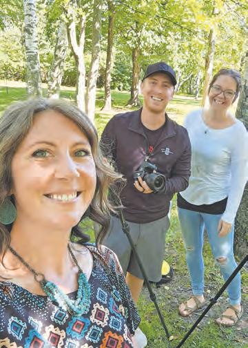 Megan Keller, advertising director (left), and Ali Carlson, sales representative of the Duluth News Tribune, along with Comstock Creative videographer Alex Comstock, produce the Best of the Best awards celebration video in Enger Park.