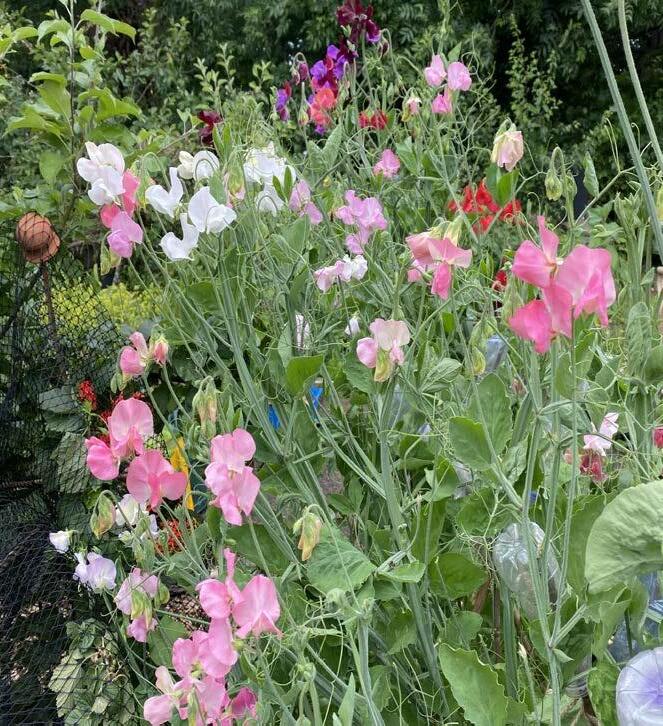 There have been only a few chances, in the light summer evenings, to pop down and water my sweet peas, courgettes, pumpkins and French beans.