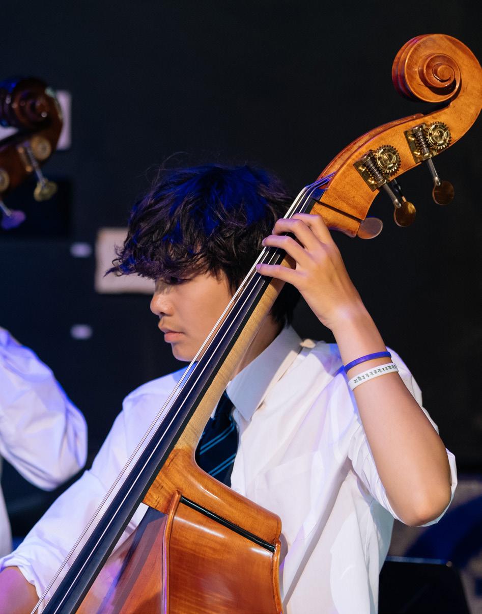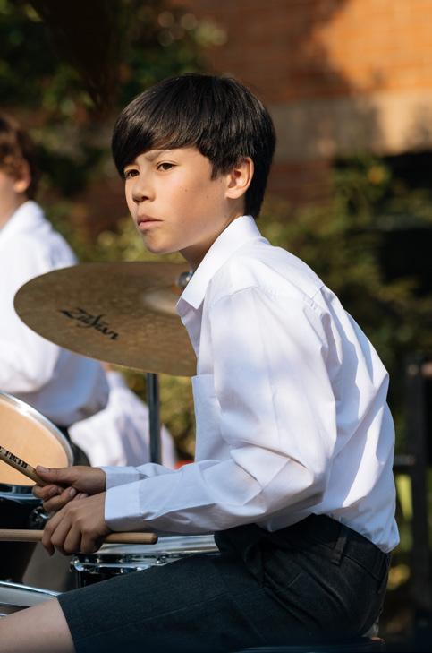 We offer a fantastic and wide-ranging music curriculum. There is something for everyone, from singing pop songs and hymns in class assemblies to participating in one of the 32 different music groups, choirs, and ensembles. Over 90% of pupils from Year 2 upwards play at least one instrument, with a large proportion taking on two. Instruction in music theory is also available. More than 30 visiting instrumental teachers deliver over 550 individual instrumental and theory lessons, which take place weekly in the purpose-built Music School, which includes a 300-seat concert hall, 12 teaching and practice rooms, a fully equipped Music Technology Studio and a classroom furnished with iMacs. Pupils can participate in our Pupil Concerts four or five times a term, and each section of the school produces its own concert twice a year. The highlights of the musical calendar are our Christmas Service and Spring Choral Concert, which take place at prestigious external venues. Our pupils have an outstanding record of receiving music scholarships and awards from senior schools.