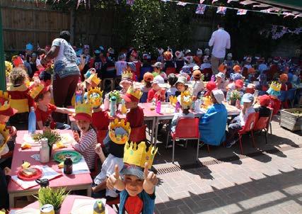 Easter, and in Assembly, the children heard The Tale of the Three Trees. At Eid al-Fitr, parents helped make a wonderful display in our entrance area, which children enjoyed as they came into school. We told the animal story for Lunar New Year, followed by lantern-making and trying out new food. We also held a Tiger Challenge with children making a vast diversity of creations to display outside school. It was wonderful watching the children so proud of their artworks and admiring those of others too. World Book Day gave us all an excuse to dress up and encourage the children’s love of books. Much fun was had making fruit kebabs for the Hungry Caterpillar, clocks for Hickery Dickery Dock and devising ways to stop Humpty Dumpty from falling off a wall. Children in Need and Red Nose Day charity events gave further opportunities to put on costumes (although not much encouragement is needed in the Early Years!). As always, we were overwhelmed by the generosity of parents, making cakes, donating pre-loved books and toys, and raising money for these worthy causes. We also held our traditional Maths Day, with everyone dressed up in different shapes. There was a fun-filled assembly, a carousel of problem-solving challenges inside and out, and the children left excited about being mathematicians at the end of the day. The Queen’s Platinum Jubilee was celebrated in style with bunting flying, crown making and culminating in a street party, a very happy day.