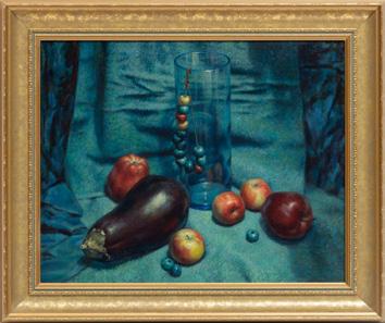 Signed Benton, Oil On Canvas, Still Life, Grapes And Apples H 9’’ W 7’’