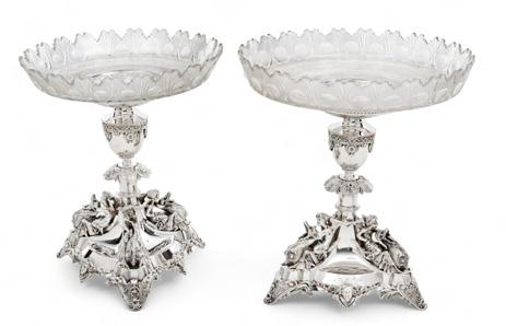Sterling Silver And Crystal Dessert Stands, 1870, H 11” W 10” 1 Pair