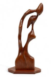 African Carved Wood Female And Male Torsos on Single Base Ca. 1950, H 17”