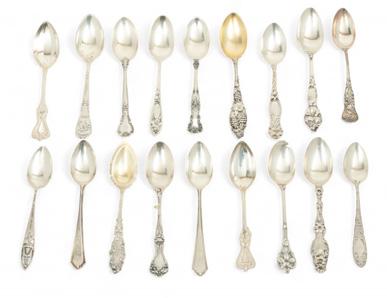 American Coin Fiddleback Silver Teaspoons Ca. 19th.c, L 5.5” 11.09t oz 18 pcs