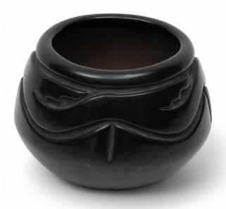 Santa Clara Black on Black Pottery Vase, 20th C.