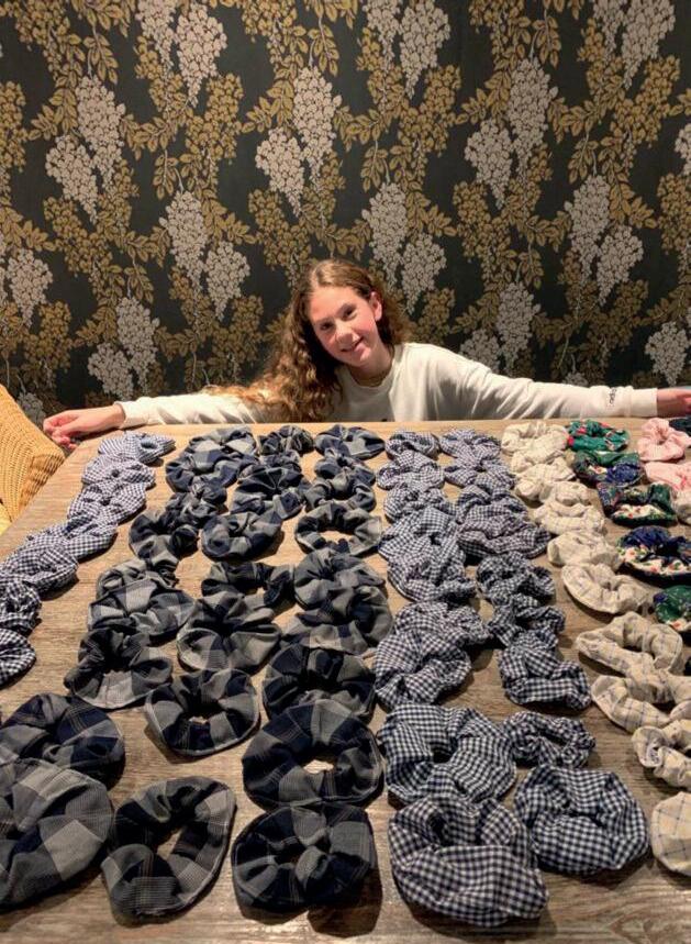 Upc ycled uniform in hair scrunchie form. All proceeds for charity at the Dumpton Christmas Fayre.