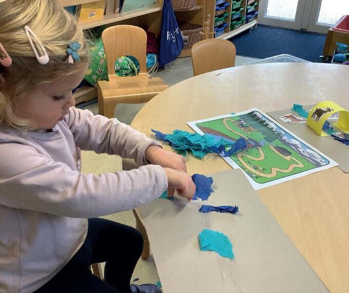 Nursery created their own 3D art to accompany a fairy tale.We used a little bridge and river for the Billy Goats Gruff tale.