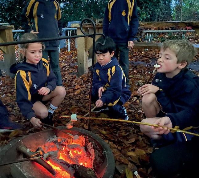 Children enjoyed roasting marshmallows on the open fire as part of an Outdoor Learning class.