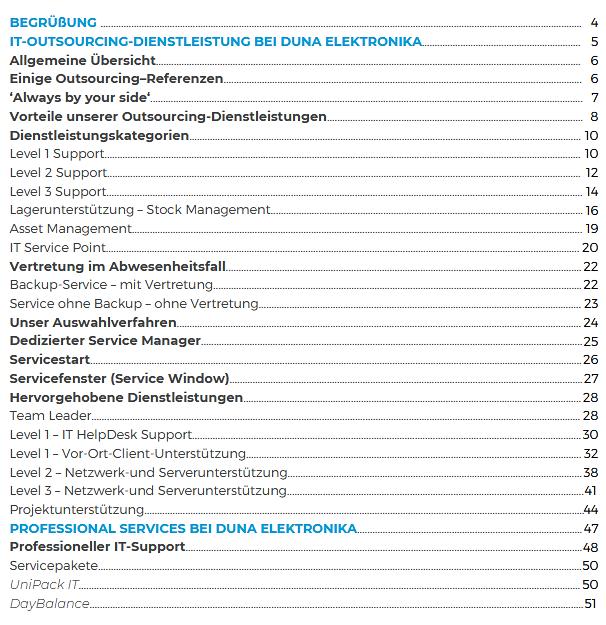 Wir hoffen, dass Sie durch die Lektüre unseres Katalogs einen vertieften Einblick in das Leistungsspektrum der IT-ServiceDivision der Duna Elektronika gewinnen und erkennen, wie wir Sie bei der Optimierung Ihrer IT-Strategie und der Erreichung Ihrer Geschäftsziele unterstützen können.
