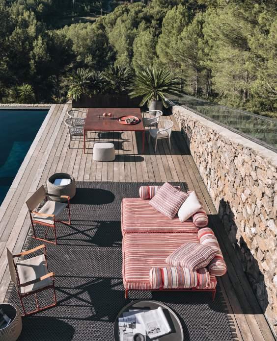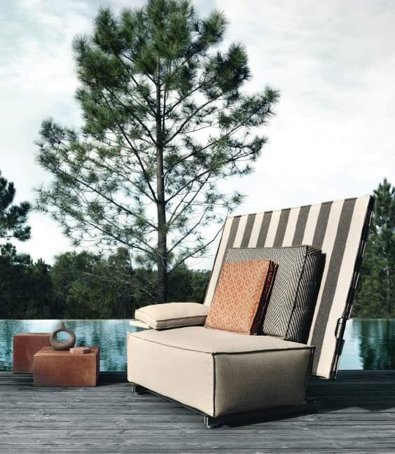 Nelle pagine precedenti: Borea, lettini rettangolari con materassino • BE92L Spool Outdoor, tavolino OS40T