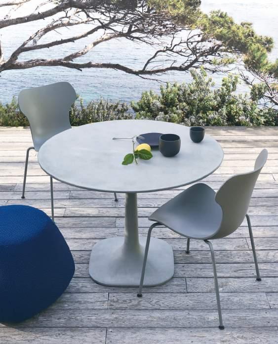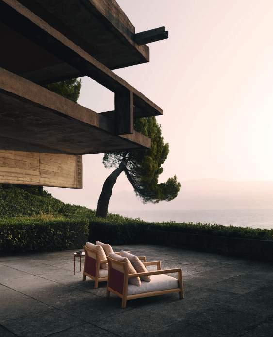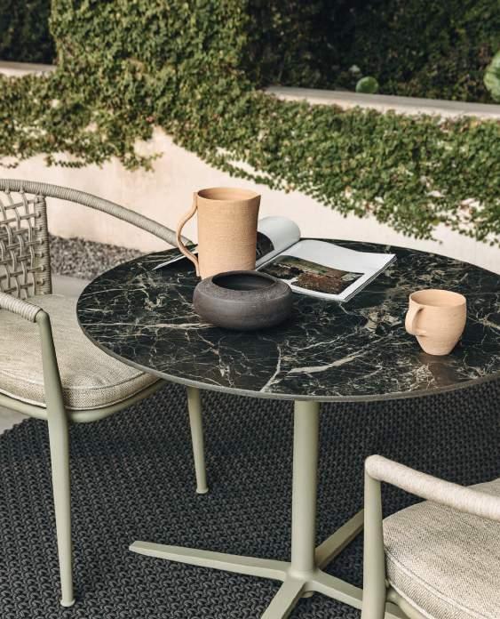 Nella pagina accanto: Pablo Outdoor, poltrone lounge • PBL82L Borea, tavolino rotondo • TBE4