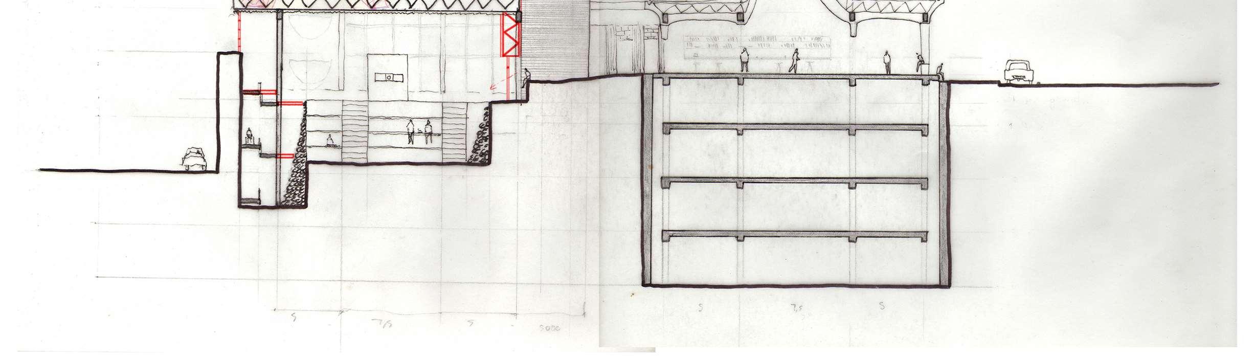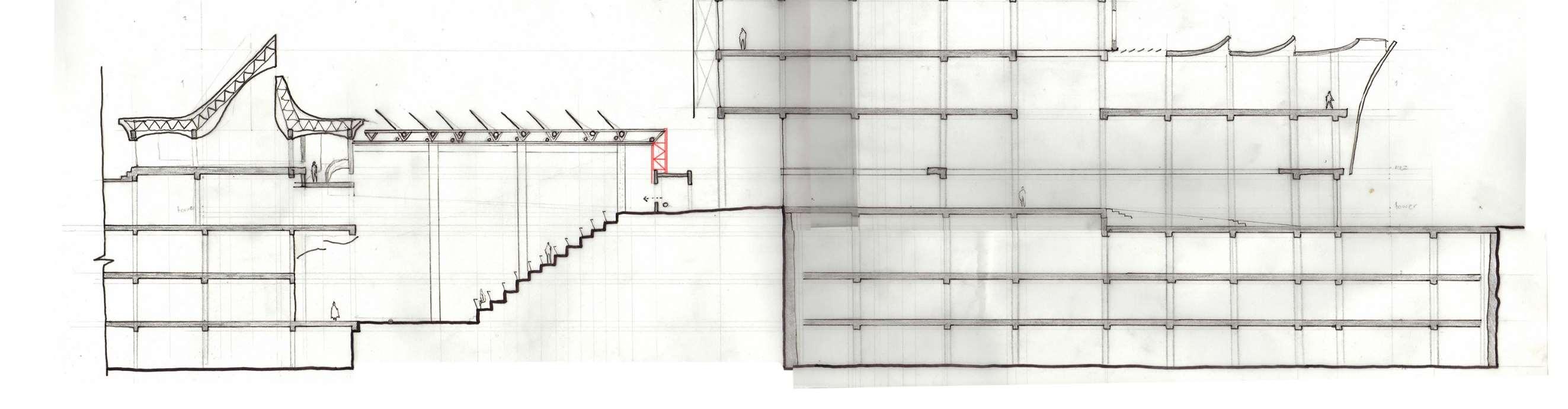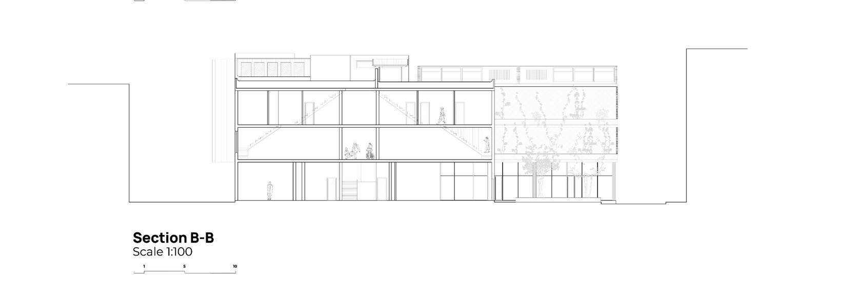 p.6 +2,PoliticalandEconomicOffices Scale1:200@A2 1PrivateAccess 2BoardRooms 3Balcony 4CallCenter SectionB-B Scale1:200@A2 1PublicSpaces 2ServiceandCirculationCore 3ConsularLevel 5PrivateLevels 7LibraryandGallery 2 1 2 3 4 5 5 3 3 1 1 7