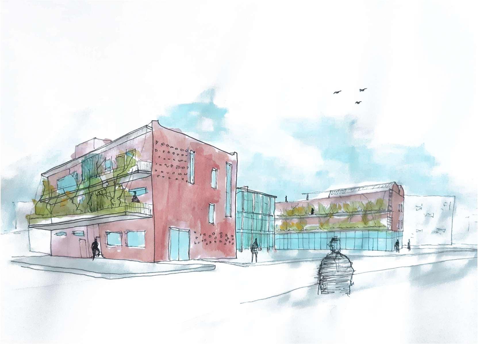 M.ArchKevinGoncalves REDROUND HOUSING Location:Germiston,Ekurhuleni Semester4,2Months Use:Mixed-useHousingDevelopment GrossLettableArea 2630m²,ER=79% WorkFlow Massing,Sketching/Concept,Handdrawn,DigitalDrawings Software Sketchup,AutoCAD,Vray,Photoshop p.17RedRoundRoomHousing|Germiston,Ekurhuleni SitePlan Scale1:500@A3 1SimpsonStreet 2F.HOdendaalStreet 3SiteB 3 1 2