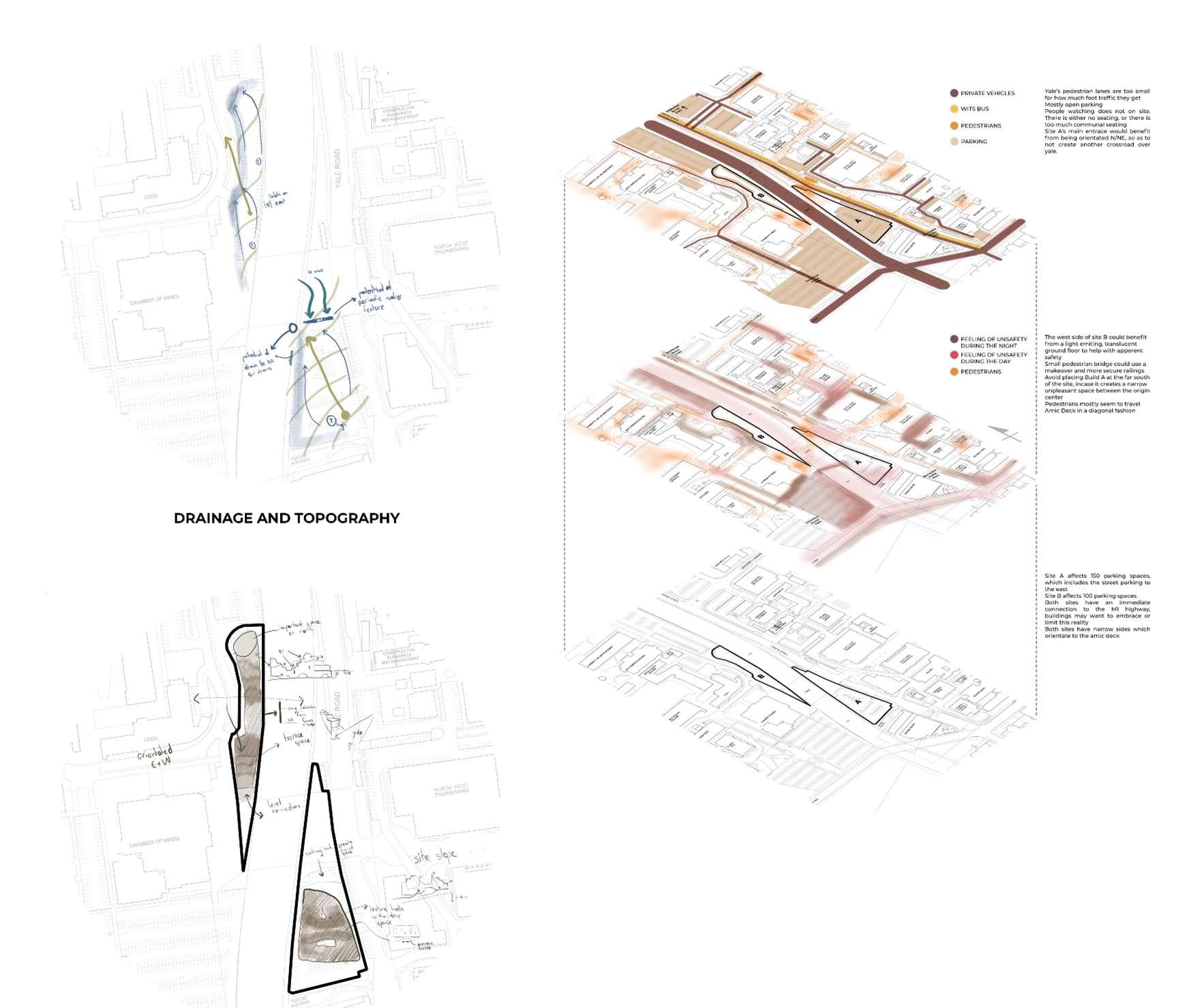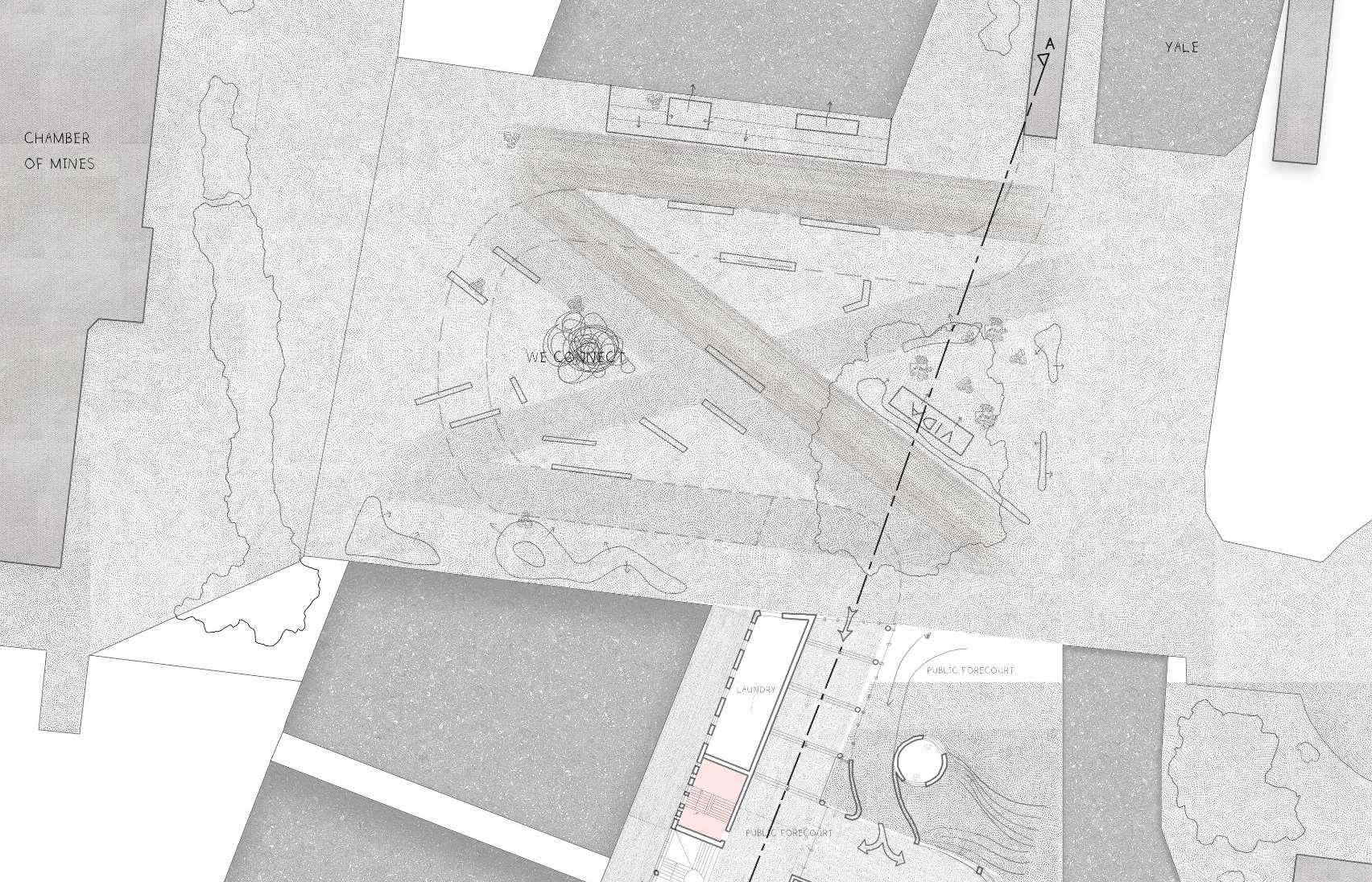 WE-LinkisthenamethatIhavechosenformyproposalofAmicDeckandthe commons.Althoughcheesy,itreflectsthefunctionofthebuilding,linkingWestandEast campus.ForAmicDeckoursiteanalysisinfluencedthedesignbyshowingusaclear diagonalmovementpatternusedbythegeneralpedestrian.UsingprinciplesfromFieldGuide-to-Life-in-Urban-Plazas,Iwashopefullyabletoenhancethismovementpattern. Thegeneraldesignnarrativerunningthroughoutisaboutcreatingamorerelatable architectureongroundfloor.ForAmicDeckthismeanscreatingsmall-scaledresting areaswhichbreakuptheDeckvisually.Inthecommons,theconceptwasattemptedby creatingahuman-scaledperimeteraroundthesite.Thehuman-scaleperimeter differentiatesitselffromageneralinstitutionaltypology.Itseekstosetanewcoursefor theimageofwits.Usingrelatablematerials,likeearth,wood,andcorrugatedsheeting.It willideallymakeitsinhabitantsfeelmorecomfortable.Amulti-storeytowershootsup fromtheperimeterborder.ItlookstoWAMasagoodindicationofcontemporarydesign withinthewitsidentity.