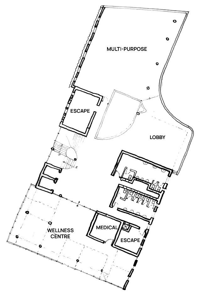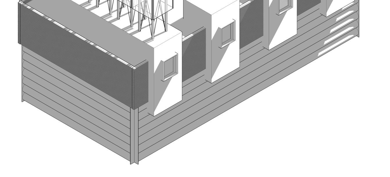 RedRoundisamixed-usebuildingproposalinGermiston.Themassing’sintentwasto drawpeopleinfromthestreetsintoapubliccourtyard.TheMasterPlanforthisproject, developedbyteam4A,establishedathemoftempo.Buildingoffofthisconcept,we decidedonthethemeoftransparentcirculation.Byenablingvisitorstoseeinto circulationroutes,onecangetasenseoftheactivityandtempoinaspace.Lookingat theGermistontypologieswefoundareoccurringmotifthroughoutnumerousbuildings. Roundededgesofbalconiesandwindows.Weiteratedonthisreappearingdesign,and letitguidedesigndecisions.TheneighbouringpolyclinicandDepartmentofLabour directedacolourpallet,whichhelpedcurateamaterialityandcharacterforthebuilding. Theneedforvisiblecirculationbroughtuptheproblemofprivacy.Wedecidedtoexplore semi-opaquematerialssuchaschannelglassandpolycarbonatemultiwallingtorespond tothischallenge.