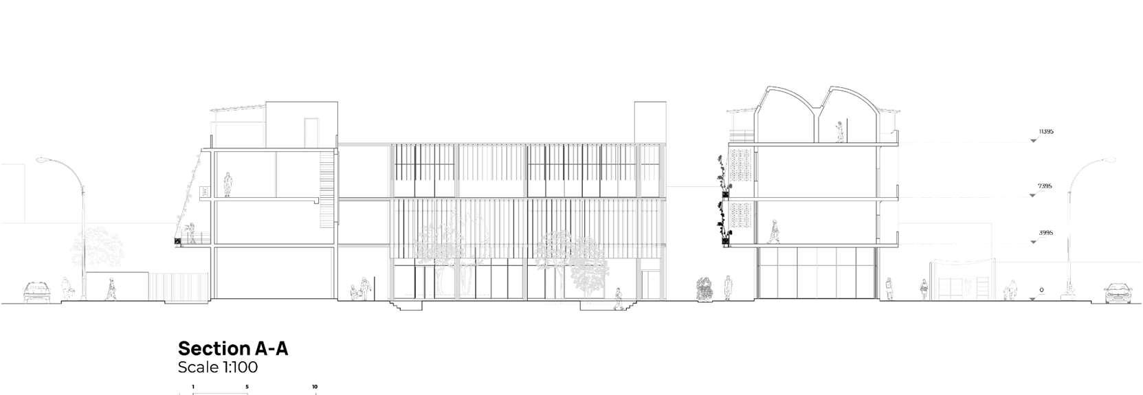 SectionB-B Scale1:200@A2 1Retail 2PublicSpace/Entrances 3ConsularAccess 4PrivateAccess 5PrivateLevels 6ConsularLevels