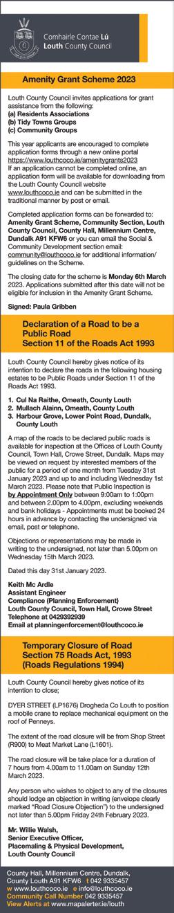 Dundalk Leader 1st February 2023 15 H ILL S TREET, D UBLIN R D., D UNDALK . 042 9331515/086 2559201