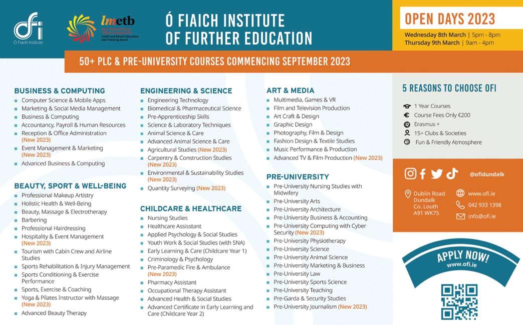 Back! DUNDALK’S FREE NEWSPAPER Wednesday, 1st March, 2023. Vol. 16, Issue 9 • 63 Clanbrassil Street, Dundalk, Co. Louth Tel: 042 9320888. Fax: 042 9329676. Email: editorial@dundalkleader.com; advertising@dundalkleader.com