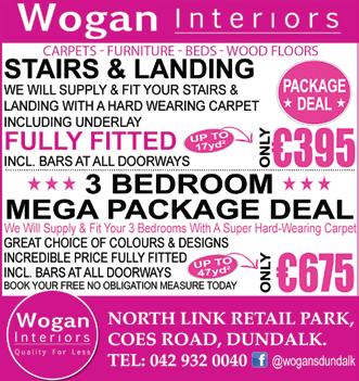 3Dundalk Leader 3rd November 2022 OPEN 6 DAyS MON to SAT 9.30 - 5.30pm Sunday 2-5pm Coe' S r oAD, Dun DA lk (beside l allys) ph: 042 938 6371 Depo S i T Se C ure S A N y i T em - F ree D e L ivery o ur i ri S h m AD e Be S poke Sui T e S C AN B e r e ADy iN Three Week S From your Choi C e oF Co Lour S A ND Com B i NAT io NS A LL o ur mATT re SS e S Are i ri S h mAD e L AT e ST De S ig NS iN S L i D i N g r o B e S - L A rge C hoi C e o F Co Lour S AND Size S Pat McKenna t/a 10,000sq ft Furniture showrooms over 2 Floors over 60 SuiTeS on DiSplAy over 20 Dining SeTS on DiSplAy over 30 Beds & Mattresses on Display Corner Suite choice of over 50 colours and combinations Sliding Robe S From €599 irish made Queen Anne Chairs, your choice of over 100 Fabrics in Patchwork, Plain, Strips, etc winter sale 3-1-1 choice of over 50 colours and combinations ORDERS NOW BEING TAKEN FOR PRE-CHRISTMAS DELIVERY