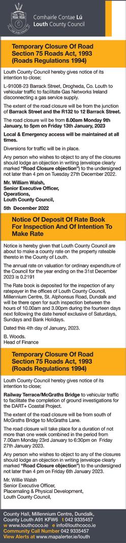 Dundalk Leader 4th January 2023 19 H ILL S TREET, Du BLI n R D., Dun DALK . 042 9331515/086 2559201