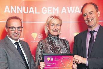 Stephen Kent, bus Éireann Chief executive o fficer, geraldine lenaghan, Customer First Award recipient and Allen Parker, bus Éireann Chief Customer o fficer. bus Éireann’s louth employees were celebrated with geraldine lenaghan recognised for a Customer First Award.