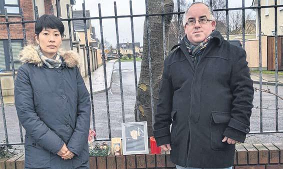 Ms Mayuko Suzuki, secretary consular of the Japanese Embassy, with Oliver Morgan at the wreath laying ceremony in Dundalk to mark the fifth anniversary of Yosuke Sasaki’s death.