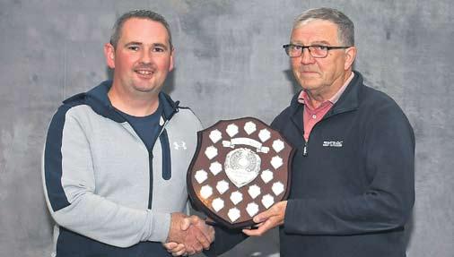 Freddie McArdle AIpF, receiving the ‘Val Wynne perpetual Shield’ from photographic judge Tommy McDermott AIpF, at the recent presentation of this prestigious award at the Cuchulainn Camera Club.