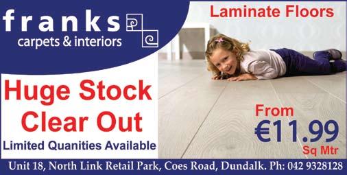 3Dundalk Leader 5th October 2022 OpEN 6 DAyS MON to SAT 9.30 - 5.30pm Sunday 2-5pm Coe's Road, d undalk (beside l allys) Ph: 042 938 6371 Deposit s ecures Any item - free D elivery o ur i rish m AD e Bespoke s uites cA n B e r e ADy i n t hree Weeks f rom your c hoice o f colours An D com B in Ations All o ur mAttresses Are i rish mAD e lAtest Designs i n s li D ing r o B es - lA rge choice of colours A n D s izes Pat McKenna t/a 10,000sq ft Furniture showrooms over 2 Floors oveR 60 suites on disPlay oveR 20 dininG sets on disPlay over 30 Beds & Mattresses on display Corner Suite choice of over 50 colours and combinations Sli D ing R OBES From €599 irish made Queen Anne Chairs, your choice of over 100 Fabrics in Patchwork, Plain, Strips, etc autumn sale 3-1-1 choice of over 50 colours and combinations ORDERS NOW BEING TAKEN FOR PRE-CHRISTMAS DELIVERY