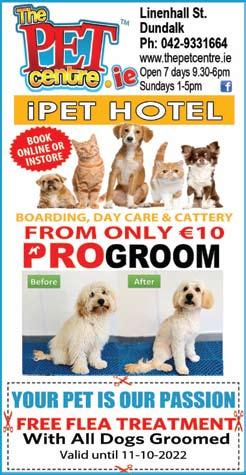 extensive range of quality headstones on display - inscription & restoration service availaBle —Open— MOn - fri 9.30aM – 5.30pM clOsed 1-2pM (sat 5pM) ard easMuinn rOad, dundalk. phOne 042 935 7296. dunnesmonumental@gmail.com. DUNDALK’S FREE NEWSPAPER Wednesday, 5th October, 2022. Vol. 15, Issue 40 • 63 Clanbrassil Street, Dundalk, Co. Louth Tel: 042 9320888. Fax: 042 9329676. Email: editorial@dundalkleader.com; advertising@dundalkleader.com