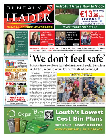 dictions? There seems to be no plan to help these people. They are just put down here into the Simon in Barrack St and there is absolutely no professional help available to them in the shelter. Why not put the shelter in the countryside somewhere and get them to work on the land and give them a purpose?,” asked one of the residents. When asked by the Dundalk Leader if the Dublin Simon Community had any plans to engage with local residents or to have an information session to listen to their concerns the organisation stated that it would not be appropriate to comment further on the develop-