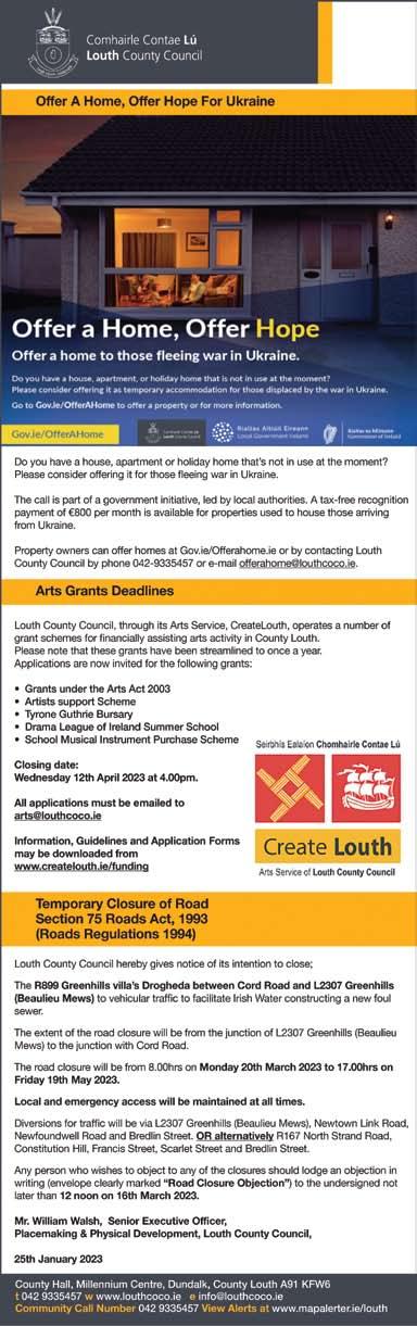 Dundalk Leader 15th March 2023 15 H ILL S TR ee T, D UBLIN R D., D UNDALK . 042 9331515/086 2559201