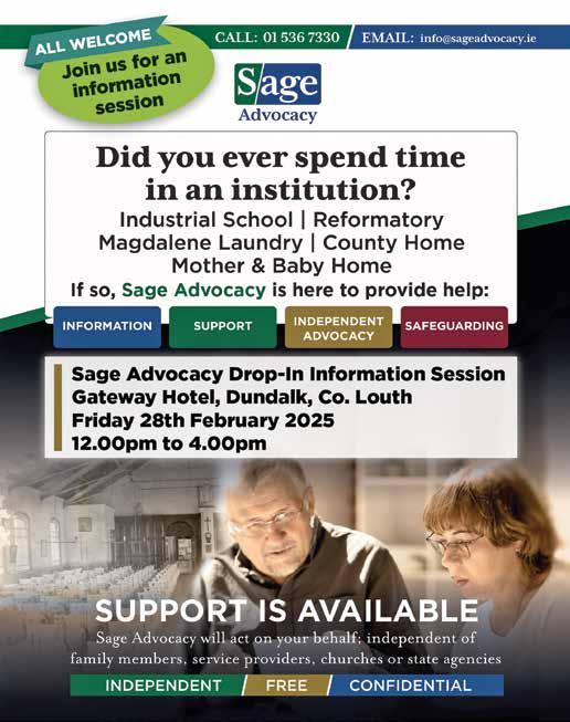Damian, on behalf of Sage Advocacy extends a warm welcome to survivors of institutional abuse and their family members, as well as members of the public across the mid-west region interested to the drop-in information session in the Gateway Hotel, Dundalk, Co Louth on Friday 28th February from 12noon