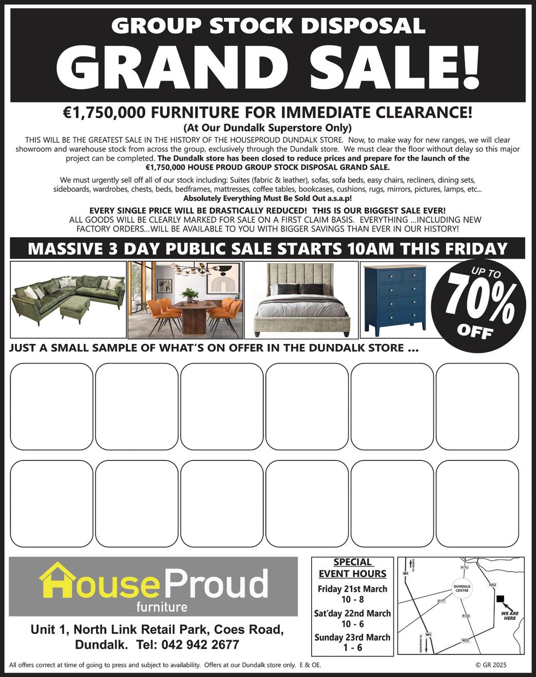 Only €5 for one week up to 20 words. 042 93 20888. The Dundalk Leader. 4’6” MATTRESS for sale, Elite 1800, brand new, paid €500, would take €250 Tel 086 3675618.