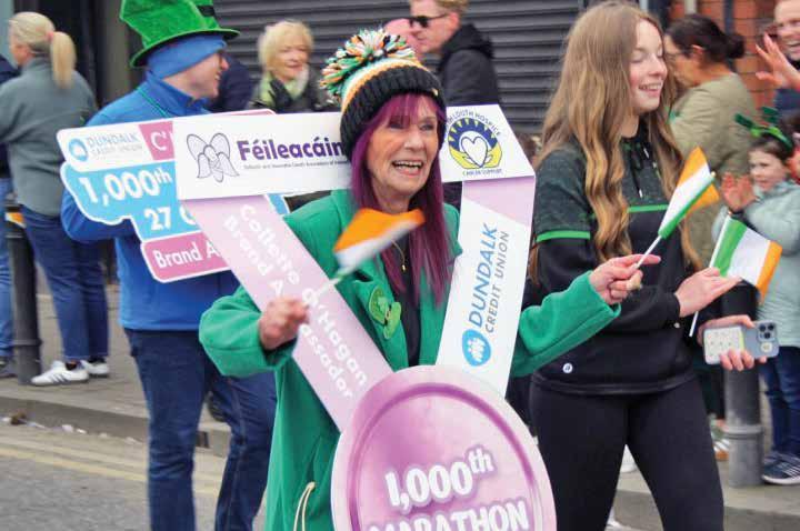 THOUSANDS of people braved the cold on Monday afternoon to enjoy a spectacular Dundalk St. Patrick’s Day parade. Almost seventy local groups took part in the parade which was led by marathon runner Collette O’Hagan who was given a hero’s welcome by the watching crowd as they helped her celebrate her recent monumental achievement of running 1000 marathons.