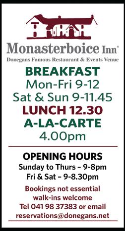 Saturday 26th—Sportmans Ravensdale 10am-12pm; Faughart Shrine 2pm to 330pm. Sunday 27th—omeath Garda Station 10am-11am; Cooley hall 1130am-1230pm; St Patrick’s GAA 1230pm to 130pm. Saturday September 2nd—Cooley Sheep Breeders Show 8am to 12pm.