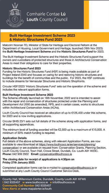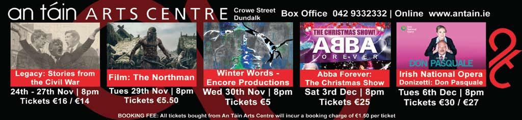 DunDalk Paint store We Have Moved to Unit 1 McKevitt CoMplex (Go Filling Station) Newry Rd., Dundalk Eircode A91 Y68X Tel 042 938 6948 Open 6 Days 8.15am – 6pm (Sat 9-5pm) HOme Delivery Service AvAilAble Hamster Cages From Only €25 Complete Aquariums From Only €79.95 Check out our Facebook Page C H ristmA s VO u CH ers AVA il A ble Linenha LL Street, Dun Da L k Ph: 042 933 1664; www.thepetcentre.ie Open 7 Days 9.30-6pm Sundays 1-5pm Over 50 Years In BusIness B oo K Y o UR do G'S CHR i S t M a S GR oo M to daY HUGe SeleCtion of xMaS pet toYS fRoM €2 Dog b eds From €27.95 DUNDALK’S FREE NEWSPAPER Wednesday, 23rd november, 2022. Vol. 15, issue 47 • 63 Clanbrassil Street, Dundalk, Co. Louth Tel: 042 9320888. Fax: 042 9329676. Email: editorial@dundalkleader.com; advertising@dundalkleader.com