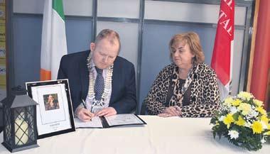 Opening of Book in County hall. Cathaoirleach Conor keelan and Chief executive Joan Martin.
