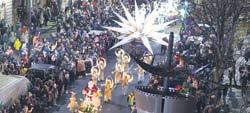 The procession was a winter fairy tale come to life with the Nut cracker prince spinning fire, a flying fairground horse, troupe of Danc ing Christmas Stars, the Sugar plum fairy,