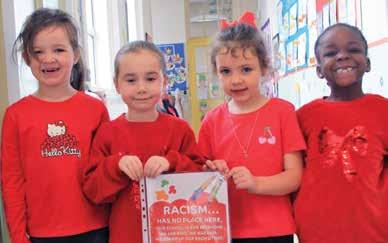 1st Class pupilss wear red for Castletown Girl’s School Anti Racism day.