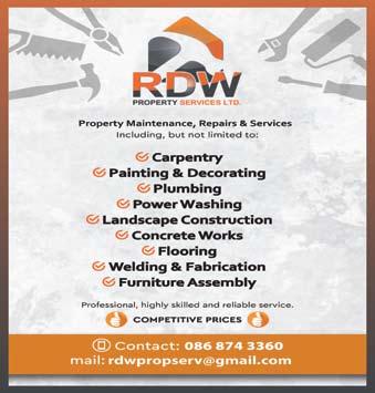 ProPErT y mAiNTENANCE—Repairs, building, plumbing, painting, roof repairs, tiling, bathroom refurbishments, concreting, plastering, gardening, power washing, PVC facia and soffits, Over 20 yrs experience. References available. Tel Michael on 085-762-3758.
