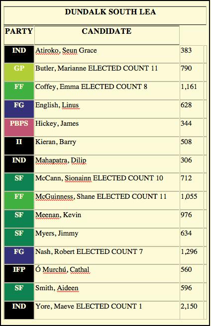 Fianna Fáil also took two seats in Dundalk South with Emma