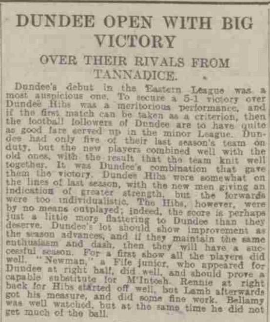 Rovers and Aberdeen were suspended from the top league. Dundee and Raith Rovers were invited to join the Eastern League and this was to set up the first ever competitive city derby.